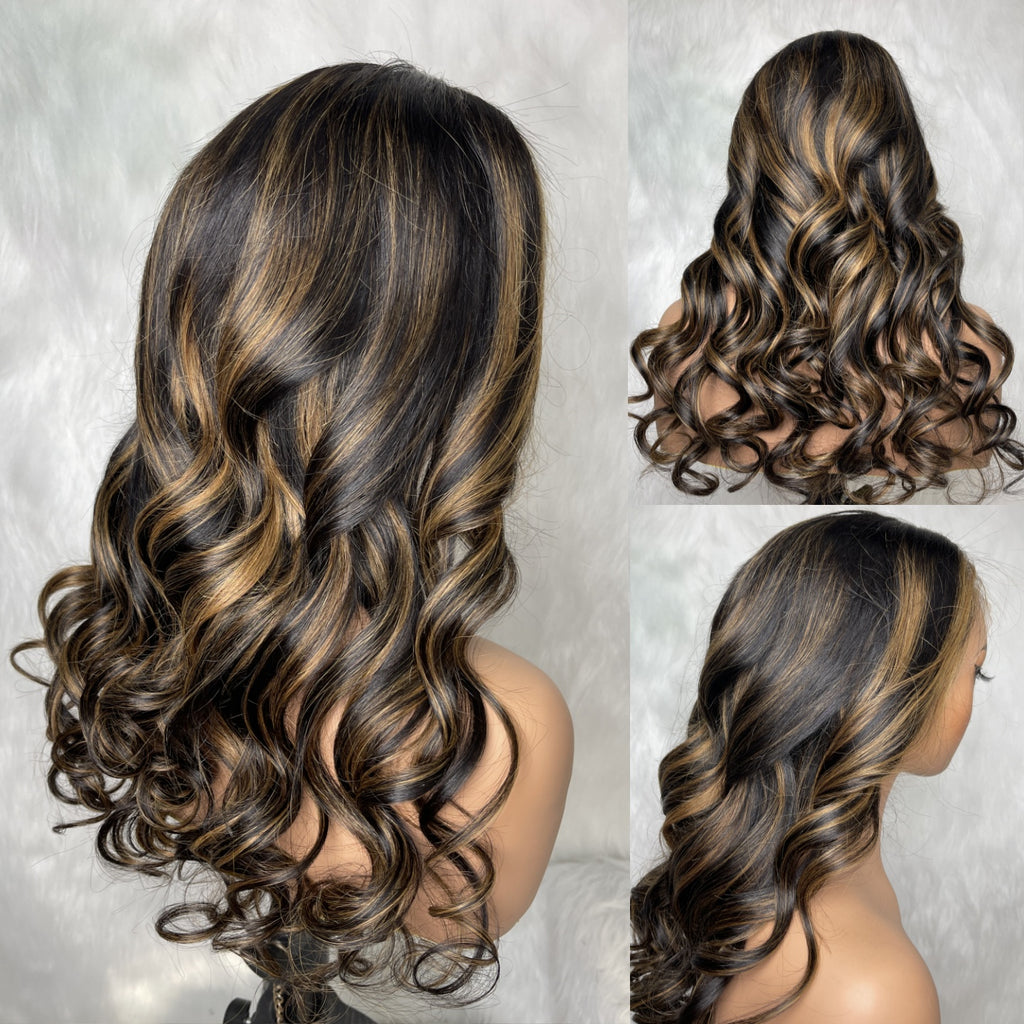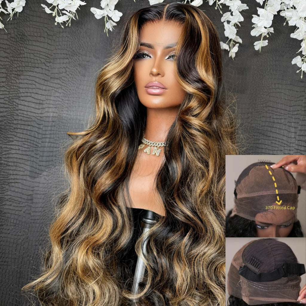370 Fitted Cap Swiss Lace Body Wave Highlight Wig With Invisible Adjustable Strap