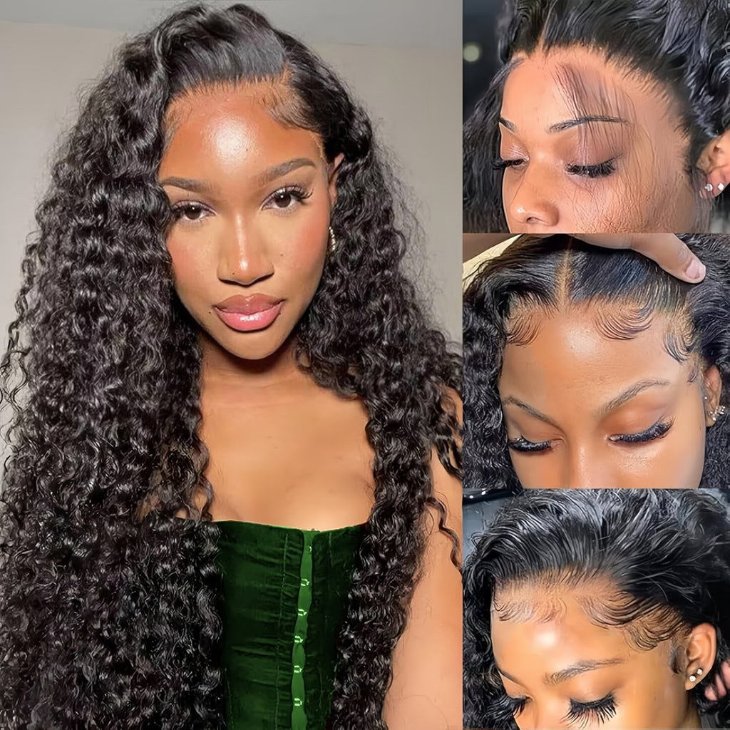 Upgraded Full Lace Wig (All Lace No Mesh) Transparent Lace Human Hair Wig with Invisible Strap Deep Wave