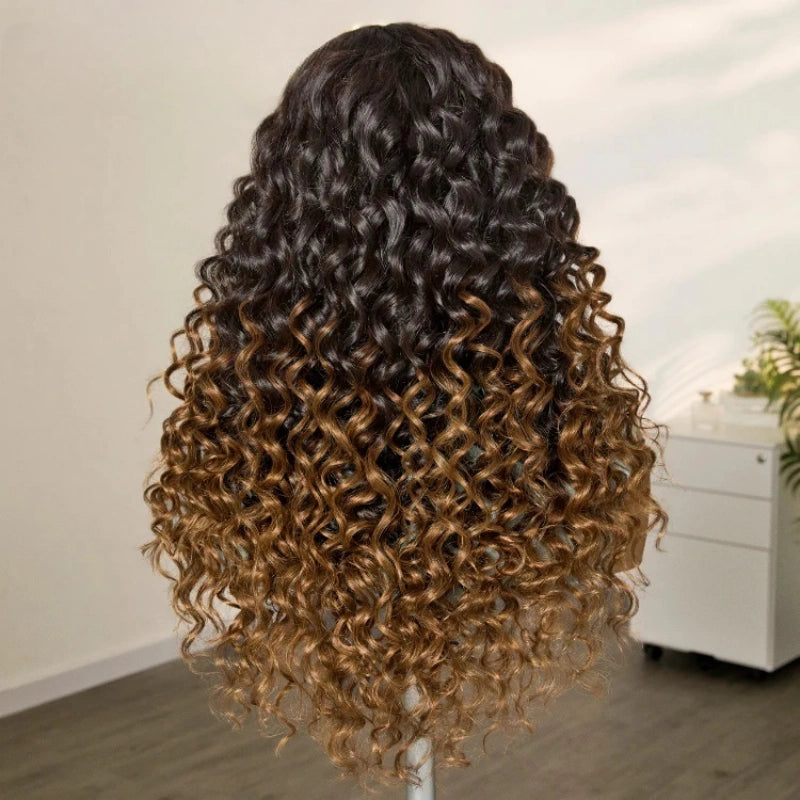 Brown Ombre Highlights "Mini Knotless" 13x6 HD Lace Super Pre-plucked Hairline 250% Density Wig - Water Wave